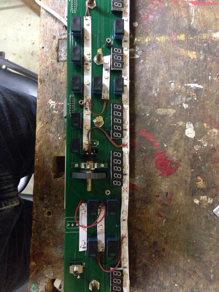 Once taken apart it was quite easy cutting the LED strips, wire them and glue them on the PCB.