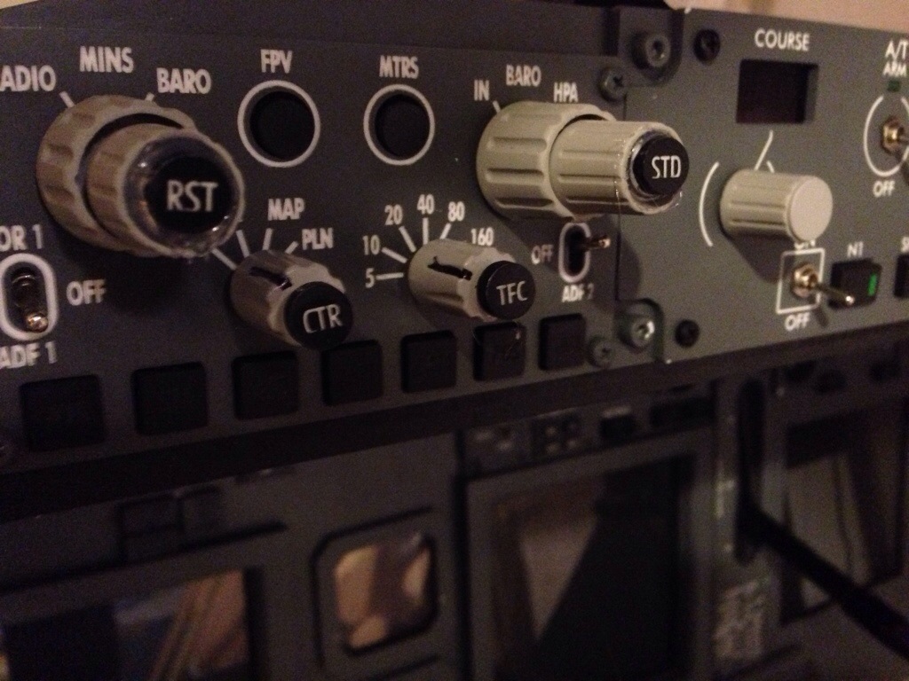 My knobs are from OpenCockpits, the panels from Hispapanels. The picture below shown the final product.