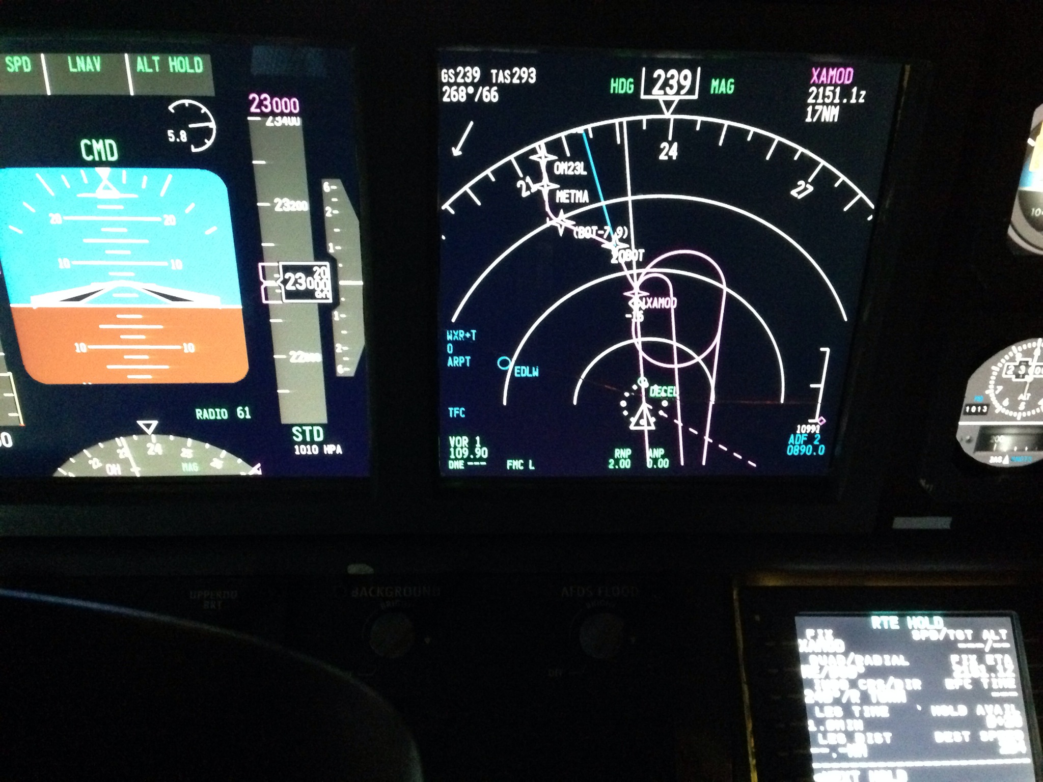 Eventhough delayed something like half an hour it was actually pretty cool to be able to perform the HOLD by just programming it in the the FMC and the rest was easily handled by ProSim and the FMC.