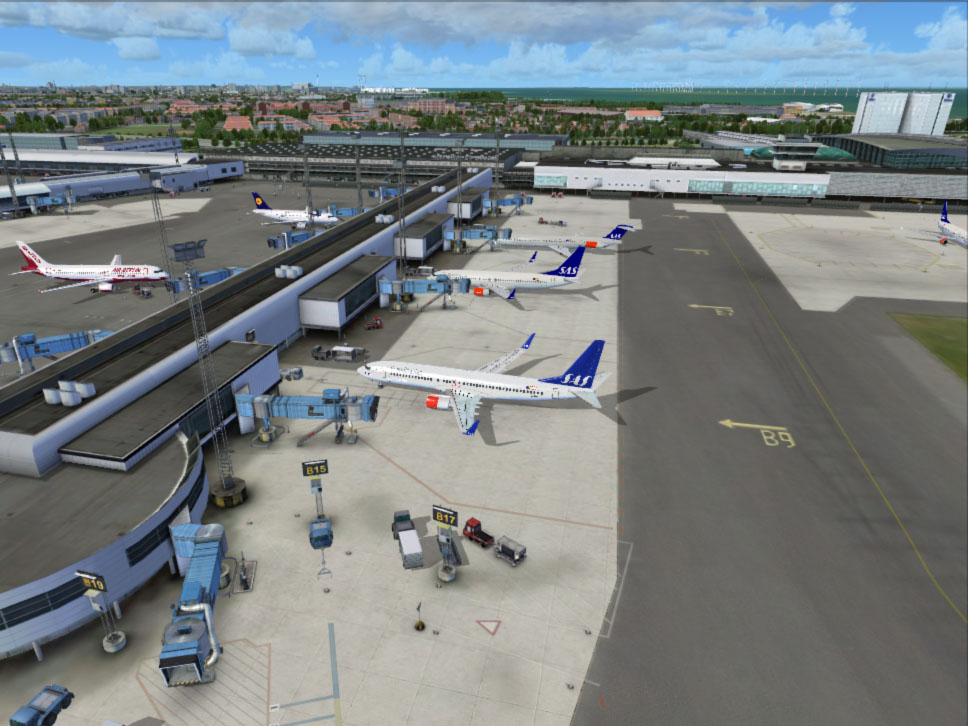 Here is a picture after landing in Copenhagen (I am the SAS in the middle). This is vatsim, so all other aircrafts is real people also moving around the airport. No AI traffic or static planes here.