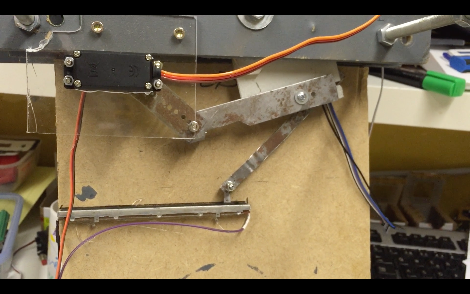 Skærmbillede 2015-10-27 kl. 10.34.25Inspired by Sven-Erik Arnsberg I have attached heavy duty servos to throttle arms If this works it will allow for Prosim to move the handles when the A/T (Auto throttle) is engaged in a mode. That is what you call a motorized throttle. 🙂 The servo also gives a nice feel the the handles when moving them with no power on the servo. You need to adjust the position of the horisontal arm to get the right movement of the arm compared to the travel of the servo-arm. it takes a few try before you get it right (Hence all the holes in all three pieces.
