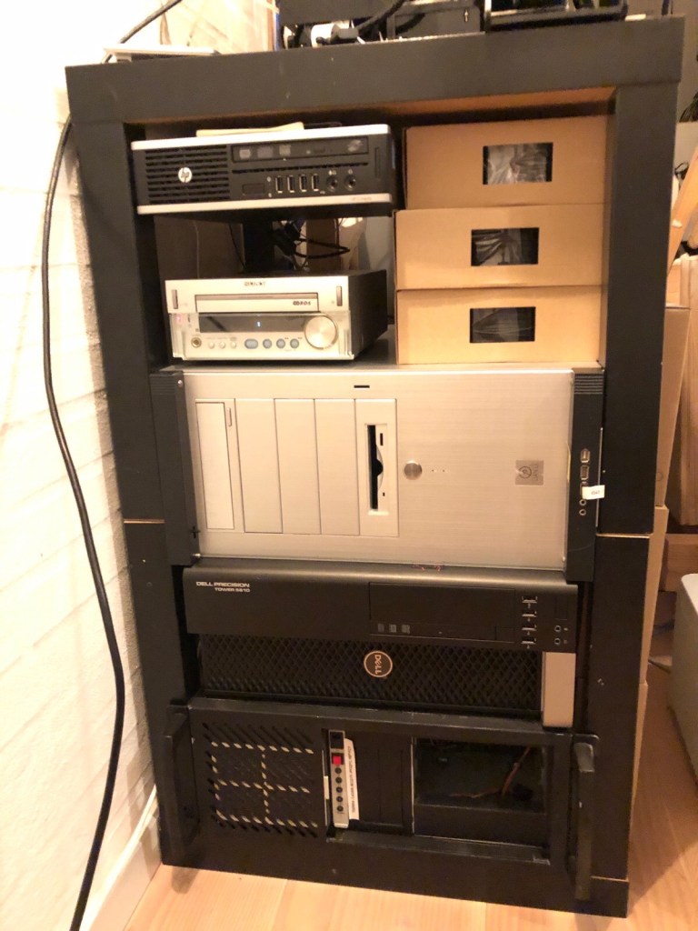 While fixing the computer I also took care of a few other things and now I am putting things back together. I have been thinking about a rack-cabinet the last year or so. But I have not found a used one that suits my needs (42U 60×60 cm). But the computers are now racked. Not inside a rack-cabinet but just inside two IKEA Lack tables for now.