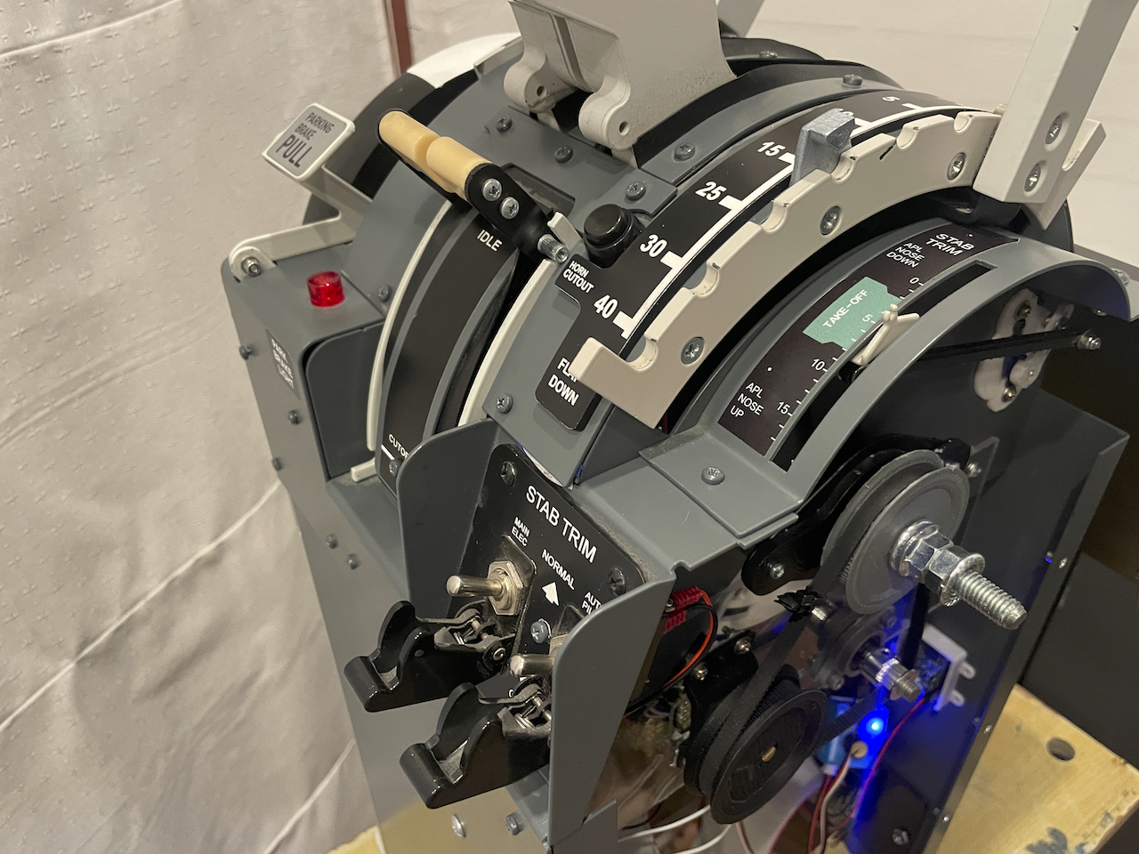 The trim wheels are able to turn, but they’re not interfaced. In order to interface them I used a pulley belt and an encoder. So when I turn the trim wheels it’s registered by the encoder and I am able to trim the aircraft that way. However no motorization at this time.