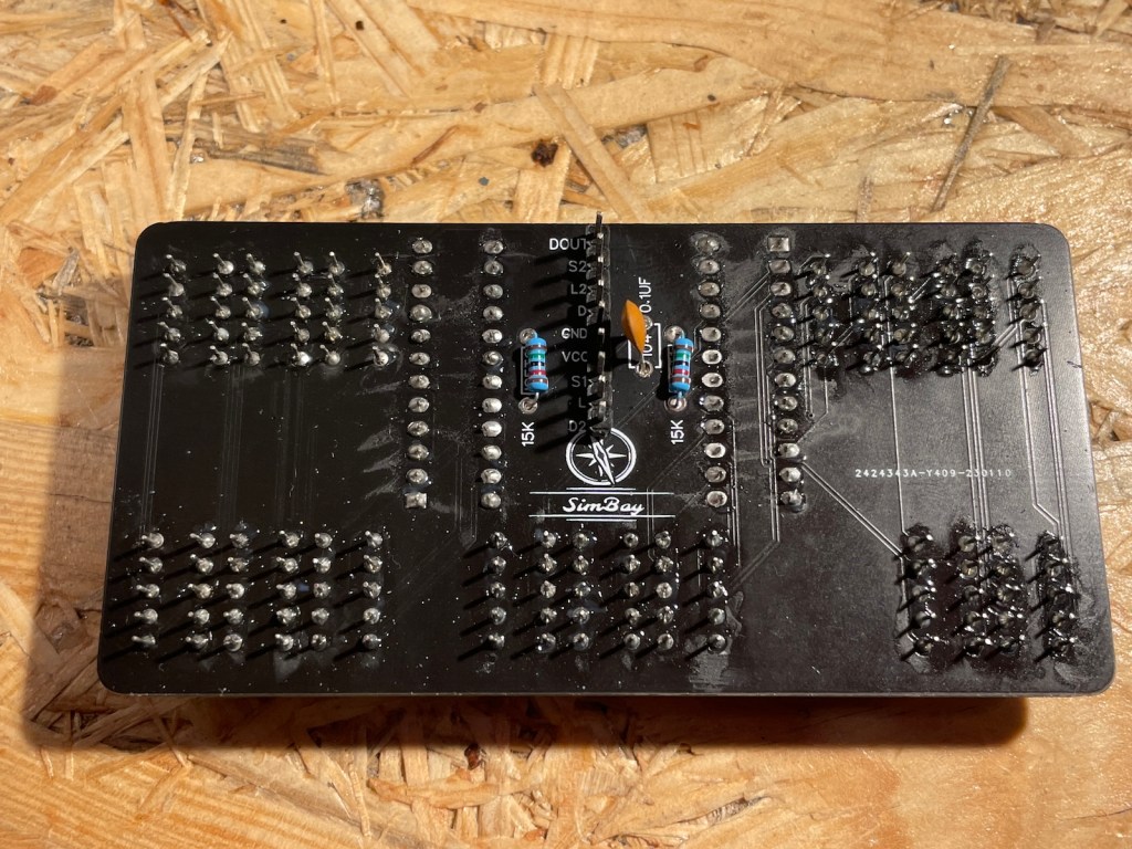 Based on my pedestal-experience I started looking for PCBs with both displays and the Max7219 chip and found a good match from a Polish based company called SimBay. All displays with all components was around €100. I big shout out to the guys at Simbay – they have been great. They were very kind answering all my questions prior ordering and adjusting the order to my wishes in display colors. Placed my order in November 2023. First package got lost in the mail. Not Simbays fault. After a month of waiting I reached out to Simbay and no questions asked they send a new package. It arrived a week later. By now it is January 2024.