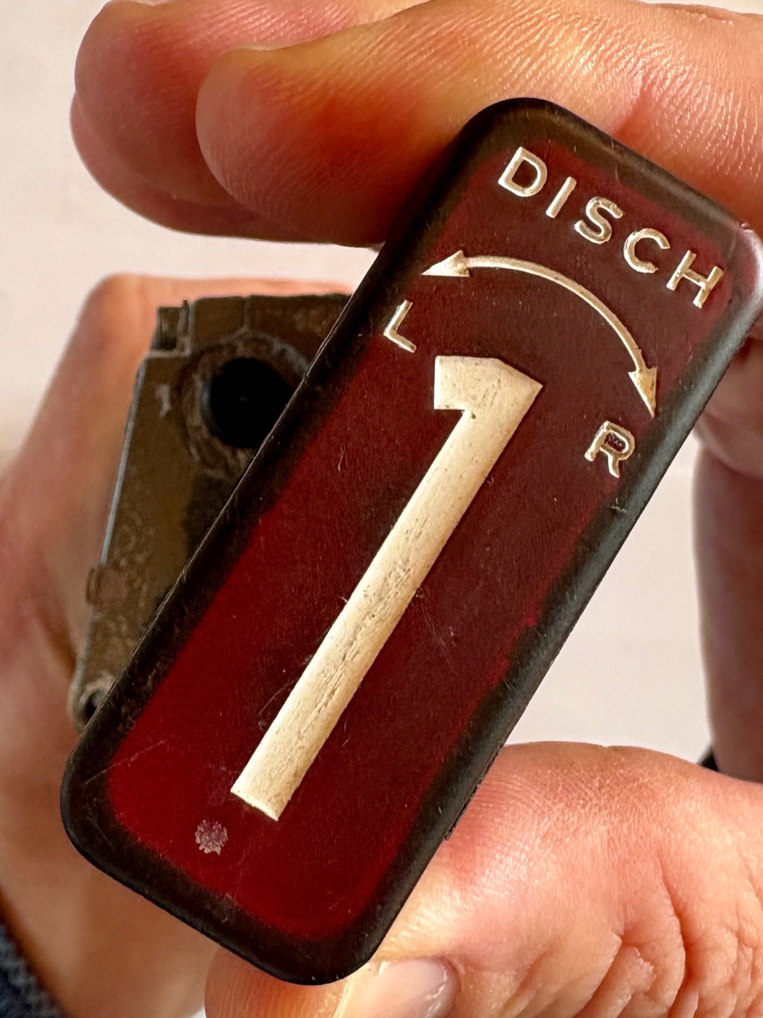 The handles – when pulled up – can be twisted to either the left side or the right side. It takes some force to turn it. So I had these handles laying on my desk while I was checking the pins with a multimeter. From the drawing on the side I could see that pin 3, 7, 8, 13, 14 had to do with the handle. But when turning the handle to either side I got absolutely no signal. No matter which combination I tried with my multimeter – nothing!