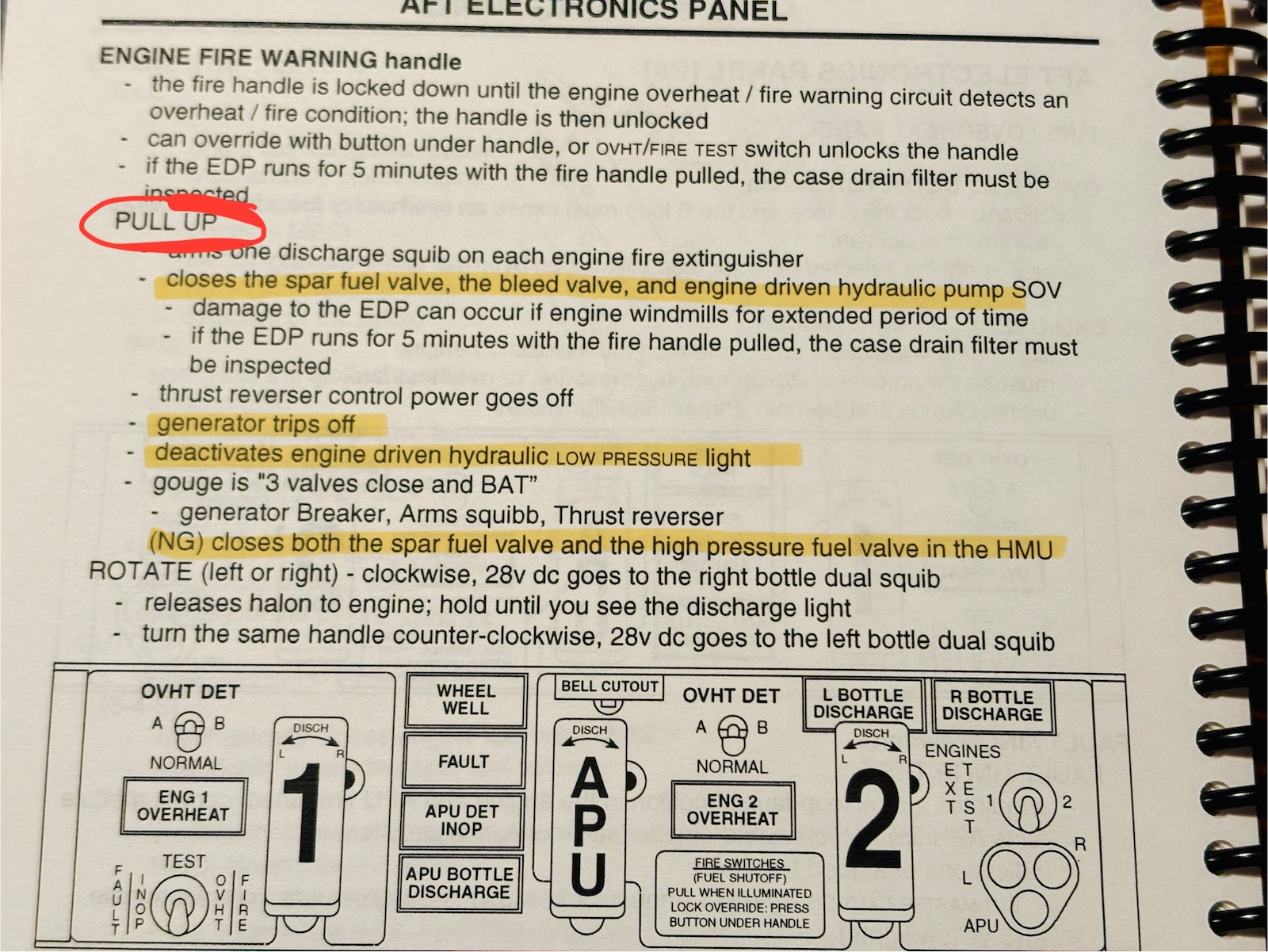 Most of the pins is used to tell different systems in the aircraft if the fire handle is pulled up or down. When the handle is pulled up different systems in the aircraft is bypassed. The way the Boeing 737 is wired if 7 systems is affected then 7 sets of wires are needed on each handle. The alternative would be some sort of signal-bus that would split/spread the signal through out the aircraft. This could lead to multiple points of failure which – I recon – is the reason it is wired directly from the fire handle to the individual systems – thous adding weight. This can be wired via pin 4 + 6 and pin 5 as ground.